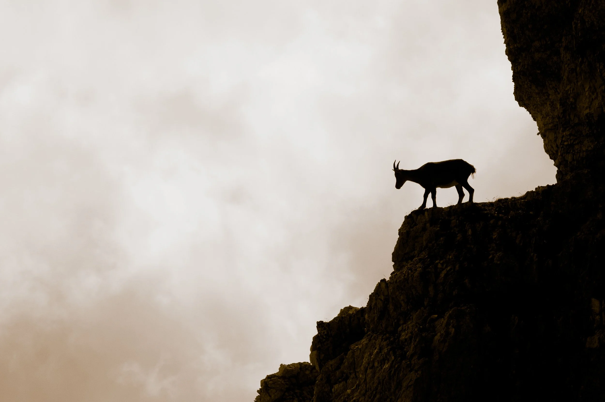 Book cover with an illustration of a mountain goat standing on a rock at sunset, with water and a large yellow sun in the background. The title reads "ERADICATION" in orange, with smaller black text below saying "A FABLE JONATHAN MILES."